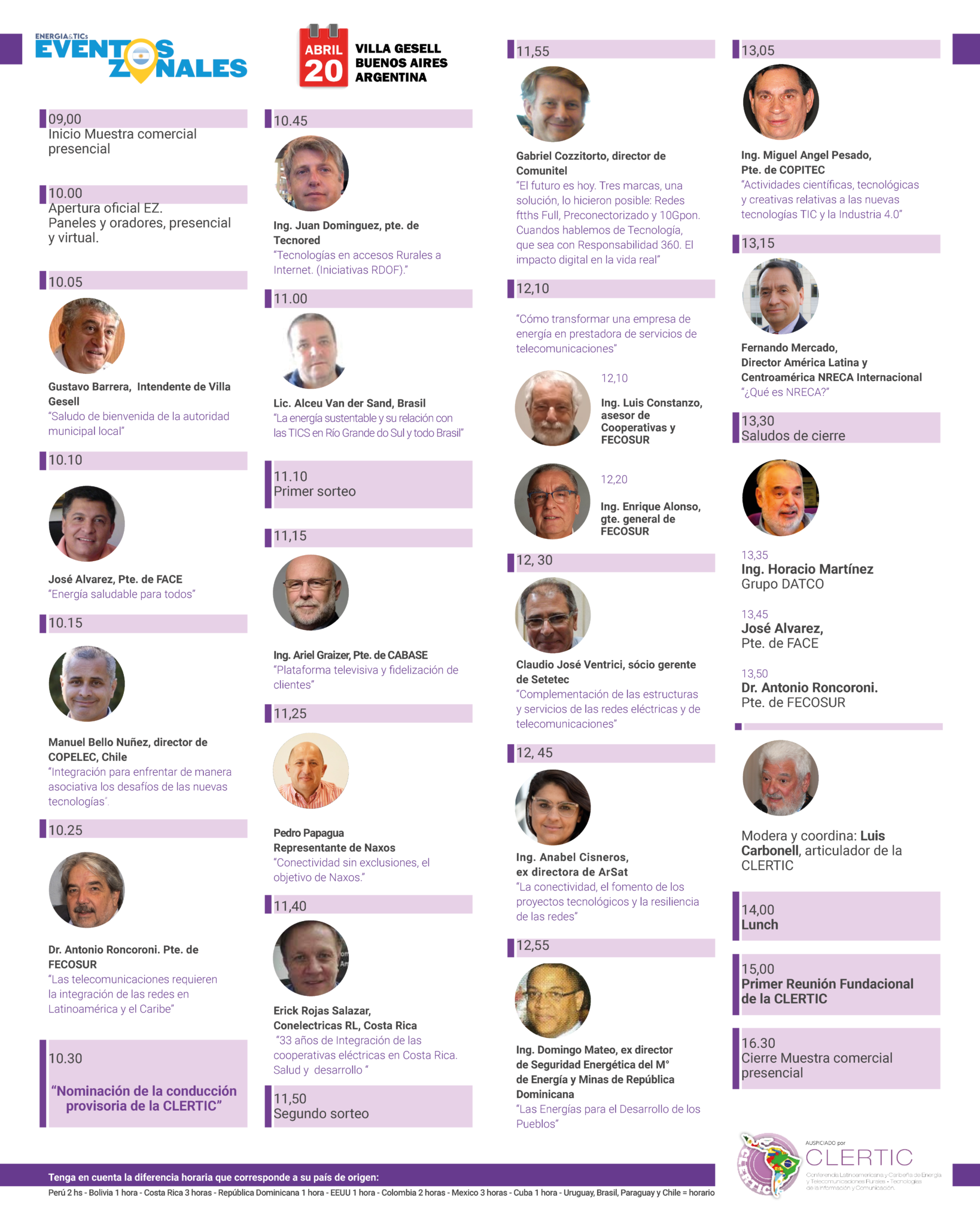 El 20 de abril, en Villa Gesell Buenos Aires, se llevará a cabo el 1° Evento Zonal 2022 de Energía y TICs, donde se debaten temas importantes y urgentes de las industrias de Energía y Telecomunicaciones. La CLERTIC (Conferencia Latinoamericana y Caribeña de Energía y Telecomunicaciones Rurales – Tecnologías de la Información y la Comunicación) que auspicia el evento, tendrá su acto fundacional y lanzamiento de la conducción provisoria con autoridades de Argentina y otros países hermanos.